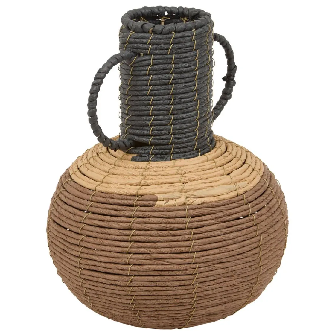 Le vase Wonj Atmosphera reprend le design d’une petite amphore à anses, aux dimensions équilibrées. Réalisé dans un tressage de papier tricolore, ce vase aux coloris intemporels est élaboré à partir d’une structure en fonte. Objet déco à part entière, il se mariera idéalement avec des matières naturelles comme le bois, la jute ou le verre. Choisissez des tiges végétales ou quelques fleurs colorées et variez les plaisirs au fil des saisons ! Pour profiter d’une ambiance chaleureuse toute l’année, composez des bouquets de fleurs artificielles Atmosphera.