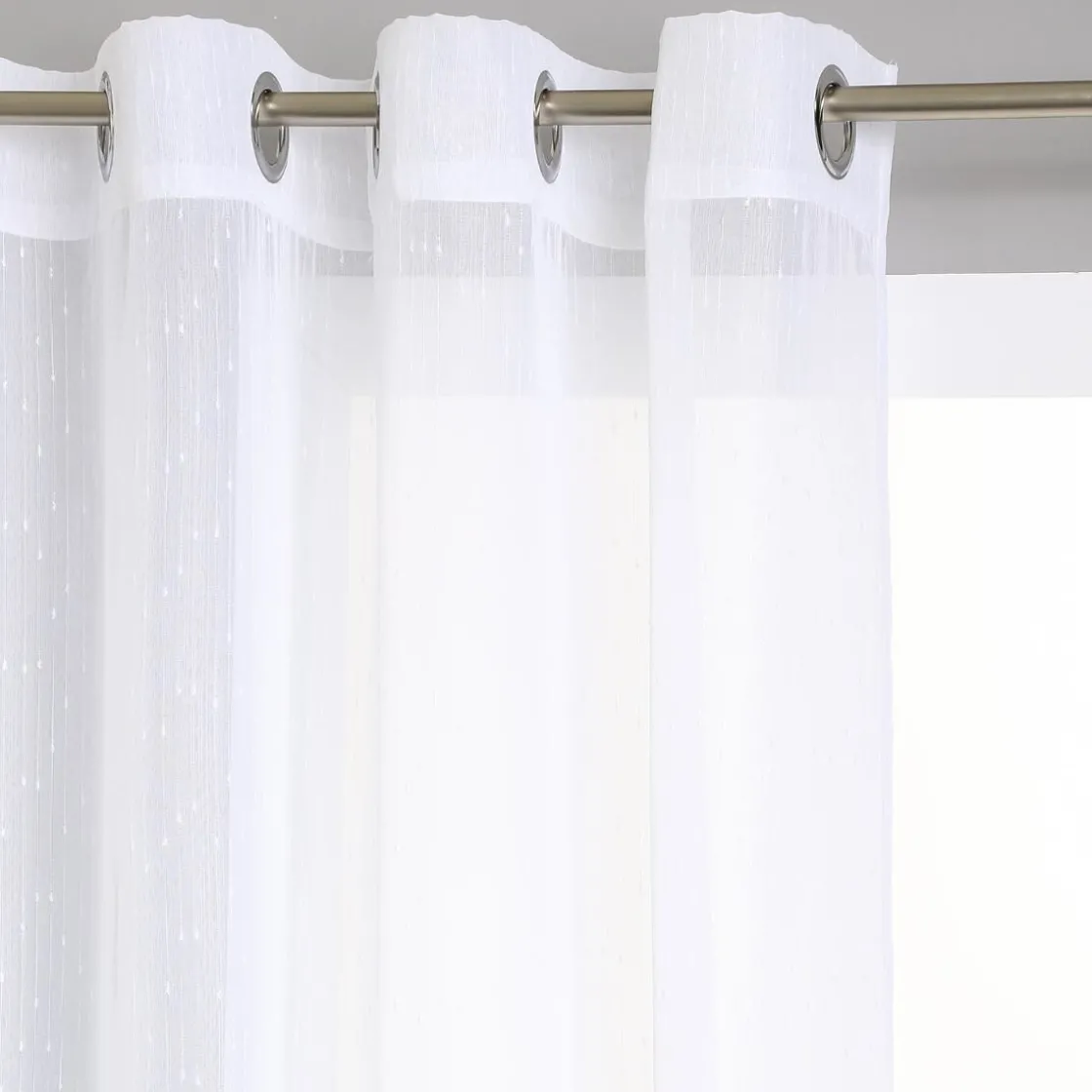 Ce joli voilage en polyester est idéal pour vous protéger des regards extérieurs tout en laissant passer la lumière. Sa ligne esthétique est rehaussée par de fines rayures qui apportent du relief. Les oeillets vous permettront de l’installer facilement sur la tringle de votre choix. Pour le nettoyer, il vous suffit de le laver en machine.