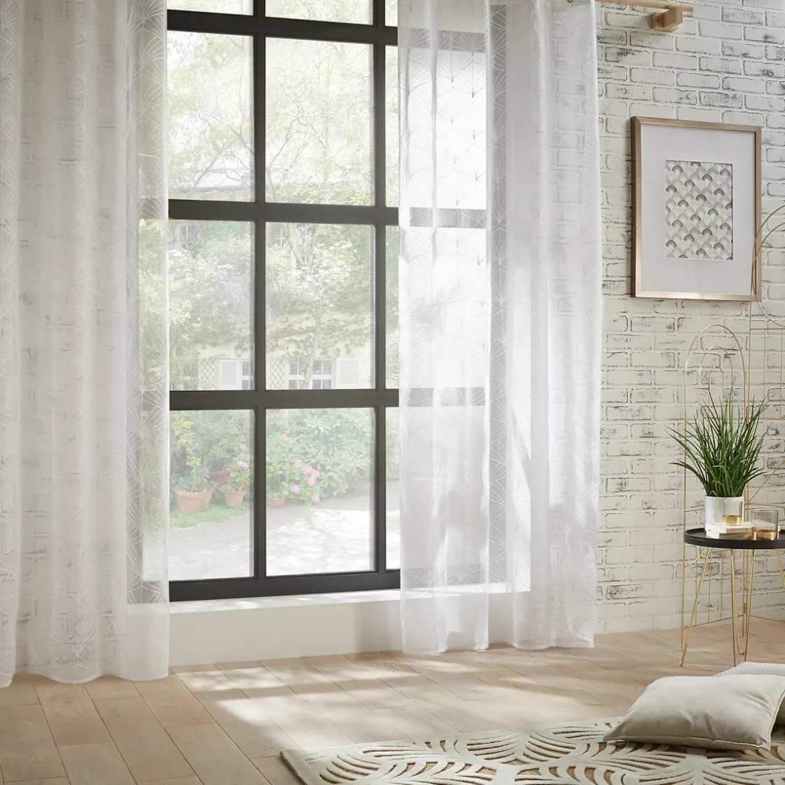 Craquez pour le voilage « Mia » qui apportera une touche moderne et élégante à vos fenêtres. Il se caractérise par de jolis motifs brodés. Ce voluptueux voilage vous protègera des regards indiscrets tout en laissant passer la lumière du jour. De plus, l’installation est rapide grâce aux oeillets en métal.